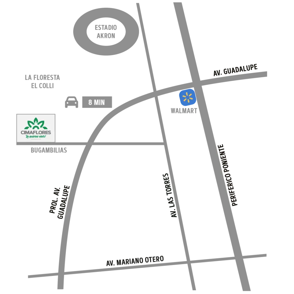 Sale de libertad y 16 de septiembre, todo Av. Guadalupe y prolongación, entra a la Floresta por Bugambilias (pasando frente a Cimaflores).